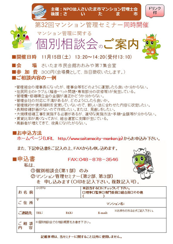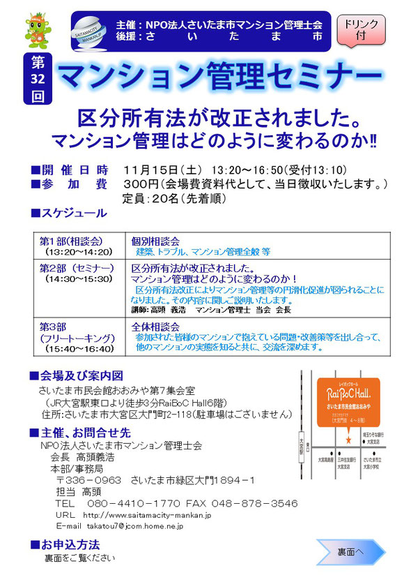 2025年11月15日 (土) NPO法人第32回マンション管理セミナーをさいたま市民会館大宮